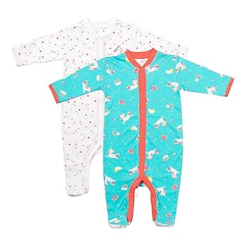 12. Baby Schlafanzug/Schlafstrampler im Doppelpack mit niedlichen Druckmotiven in verschiedenen Designs für Jungen und Mädchen
