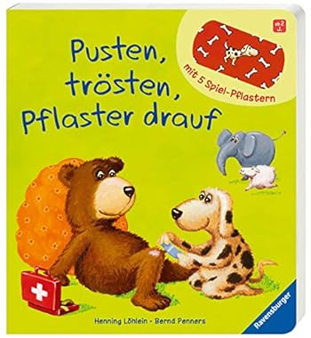 Kinder können verschiedene Tiere, die sich weh getan haben, verarzten und trösten. Mit dem Buch werden fünf große Pflaster geliefert, die immer wiederverwendet werden können.