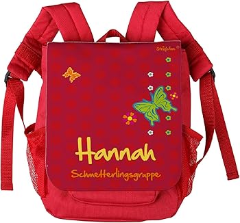 6. Striefchen Kinderrucksack Rot mit Schmetterling und Wunschnamen