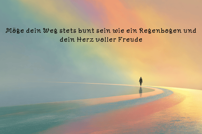 - Möge dein Weg stets bunt sein wie ein Regenbogen und dein Herz voller Freude.